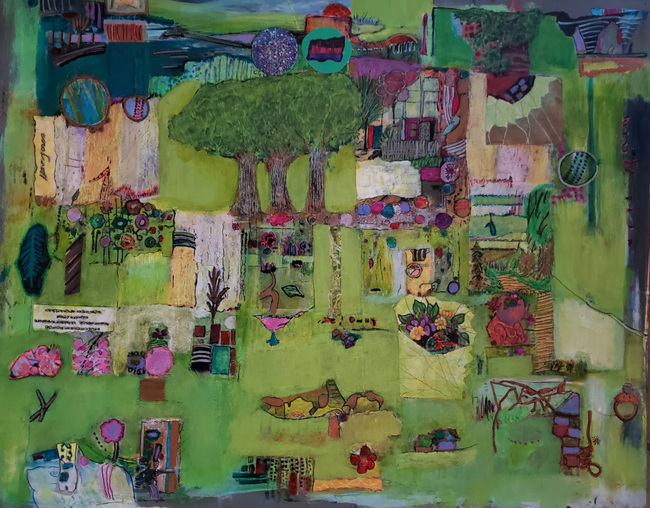 Topsy Turvy Town, acrylic on board, 19 x 29", framed